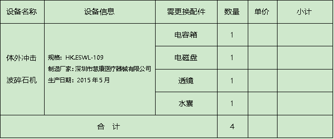 (一)项目名称:体外冲击波碎石机维修